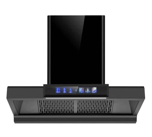 黑色油烟机,厨房欧式油烟机上吸上排风烟机特点:1、外观:整机外观高端大气、纳米不粘油涂层,拉伸面板、双层油烟过滤网、一体机设计。 2、整机不粘油、易清洁。清洁一抹即净,大幅度减少清洁用时,打理更加省心省力。 3、配置快速热溶油技术:快速清除油脂,风柜不积油、搭配36叠?3速电机、厨心所欲。 4、全新图腾炫彩式全屏开关、简约、大方、整合时尚与科技之美! 5、屏下隐藏式LED冷光灯,柔和不刺眼、照明