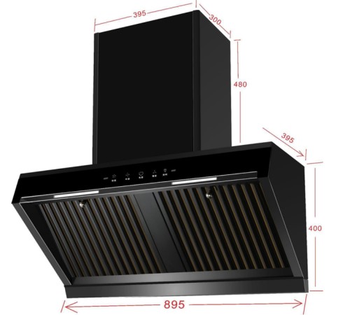 专利油烟分离设计,侧式抽油烟机,快速式吸排厨房油烟C869,烟机批发厂家电机:28叠1级能效电机;排风量:≥17±1m3/min;?大静压:≥400Pa;全压效率:28%(一级能效);噪音:≤70dB(A声功能级);烟管口径:¢180mm;净重:26Kg 毛重:30Kg;开关:体感、触摸式三速开关机身尺寸:895(宽)× 880(高)×395(深)mm围板尺寸:395(宽)×300(深)×480(