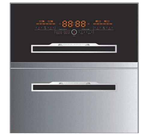 厨房消毒柜,家用消毒设备嵌入式臭氧高温红外线消毒碗柜C802面板:不锈钢+钢化玻璃拉手:内置式铝合金开关:大屏触摸LED数显容量:100L消毒方式:高温+紫外线+臭氧开孔尺寸:565×550×615mm纸箱尺寸:650×535×710mm建议零售价格:1599元/台