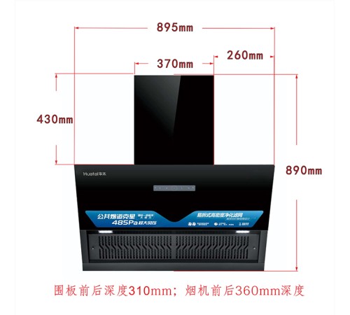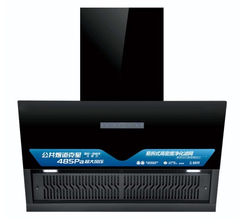 近吸式油烟机,厨房侧吸抽油烟机特点:侧式全黑机身与钢化玻璃结合、整体不粘油纳米喷涂处理、双层多净化油网、易清洗、易维修、大玻璃可拉开、配置语音播报、煤气检测功能、电热加清洗、大屏开关、一级能效电机、外观时尚大气、高雅风格、油网易拆设计。货号:C851A电机:28#全封闭一级能效电机排风量:≥17±1m3/min?大静压:≥400Pa 全压效率:22.3%(二级能效)噪音:≤65dB(A声功能级)出