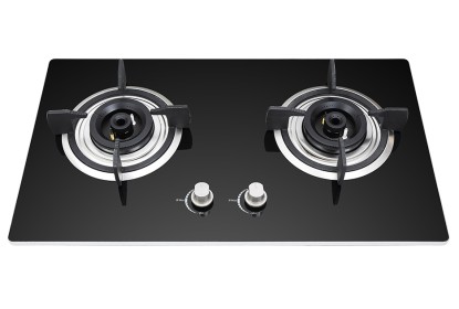 长武全黑钢化玻璃灶具,厨房双头保洁炉头铜质火盖安全熄保高端灶具B863